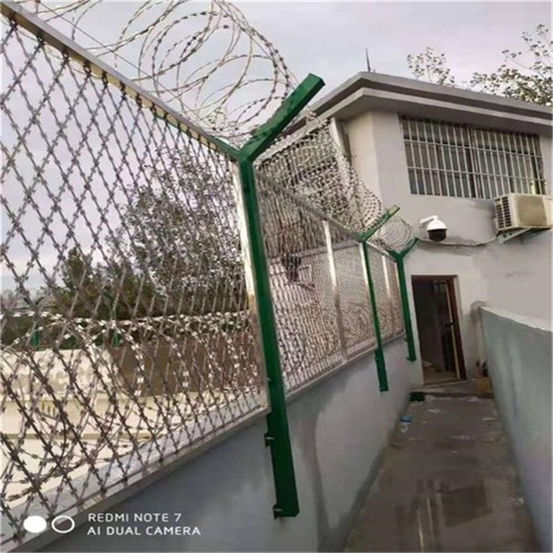 監獄防護網刀片刺網在鋼網墻的頂部安裝刀刺網,可以有效地防止犯人攀爬。首先需要測量刀刺網的長度,然后將其固定在鋼網墻的頂部,使用螺絲刀將其固定。
