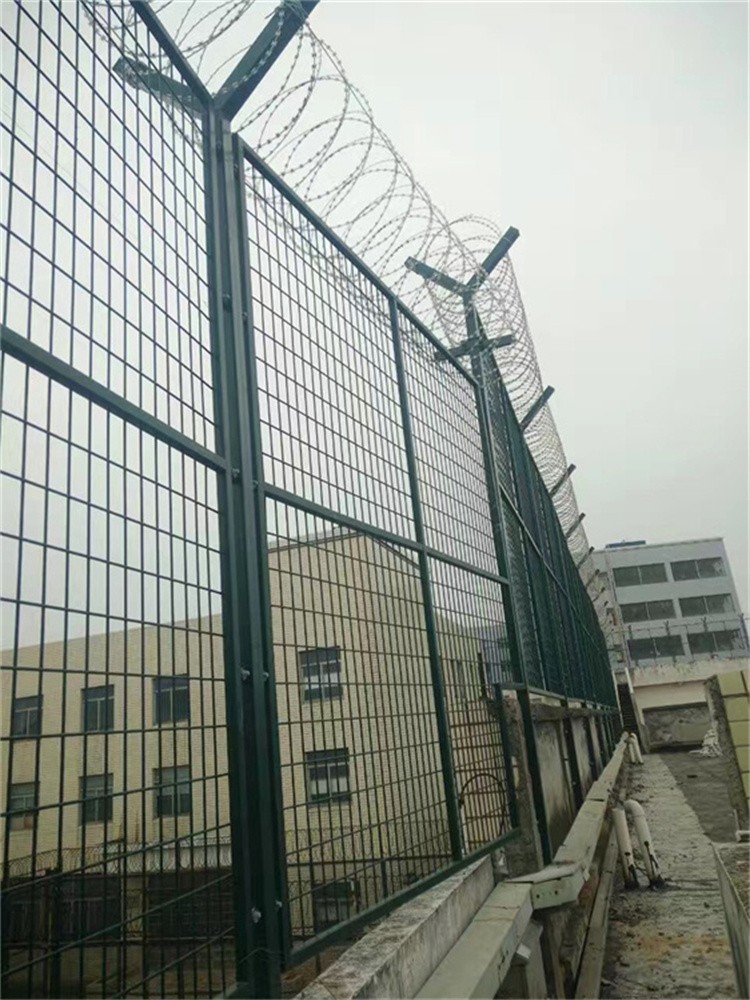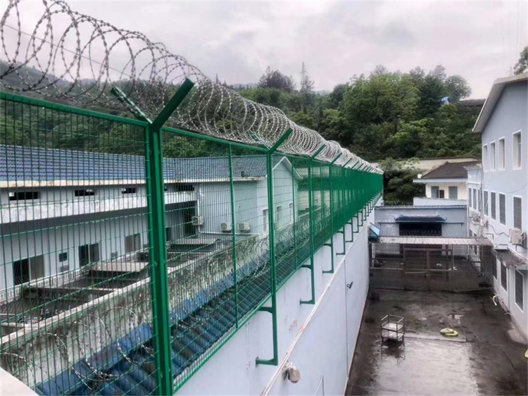 4.V型頂端安裝刀片刺網,直徑采用50cm-60cm刀片刺網主要是由熱鍍鋅鋼板或不銹鋼板沖壓而成的,它擁有尖銳的刀片,高張力鍍鋅鋼絲或者不銹鋼絲做芯線組合而成的產品。