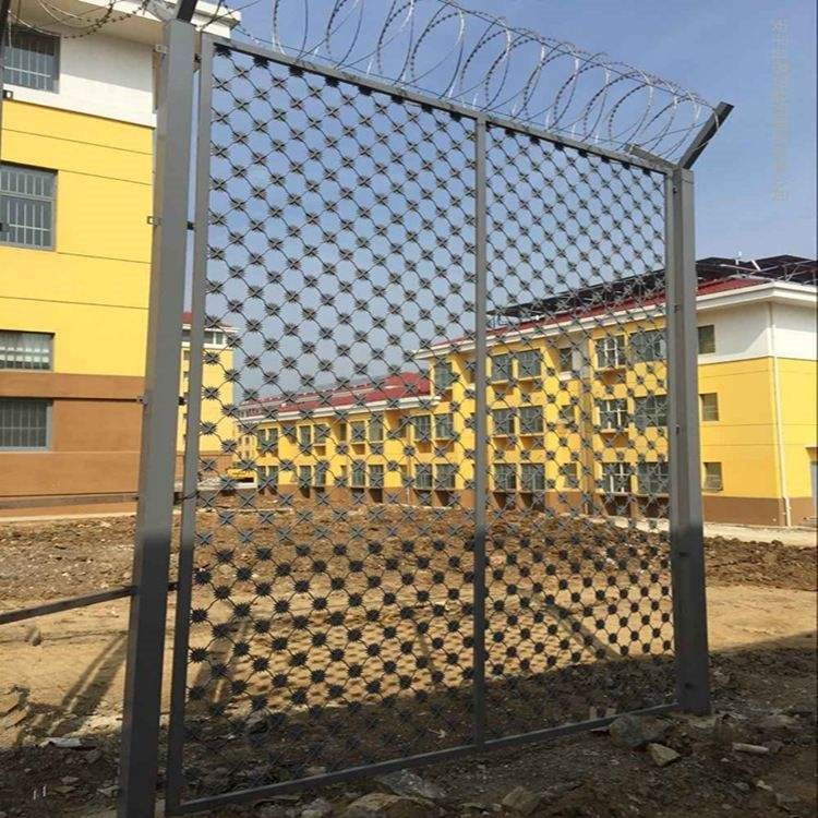 監獄隔離柵也被稱作監獄隔離網,監獄鋼網墻。監獄隔離柵經濟實惠的材質選用鐵絲浸塑制作,高度的確定在于安裝在圍墻上還是地面上,搭配不銹鋼刀刺網,起到警示防止越獄的高防護作用。