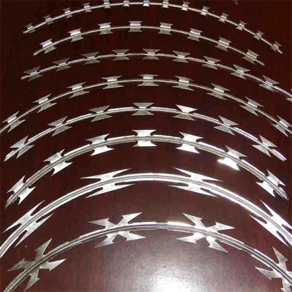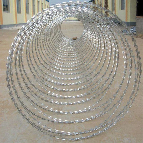 刀片刺網(wǎng)分為BTO與CBT兩種,BTO包括 BTO-10 BTO-18 BTO-22 BTO-28 BTO-30: CBT包括 CBT-60 CBT-65 BTO-22為國內(nèi)的常用型號(其它型號也可以訂做)刀片刺繩的特點(diǎn):刀片刺繩又名刮刀型刺絲,是一種發(fā)展起來的防護(hù)、隔離能力較強(qiáng)的新型防護(hù)網(wǎng)產(chǎn)品。鋒利的刀型刺由雙線扣裝后成蛇腹?fàn)睿让烙^又讓人不寒而栗。起到了很好的阻嚇作用。同時該產(chǎn)品具有美觀、防阻效果好、施工便利等優(yōu)點(diǎn)。刀片刺網(wǎng)又名刀片刺繩是一種發(fā)展起來的防護(hù)、隔離能力較強(qiáng)的新型防護(hù)產(chǎn)品。