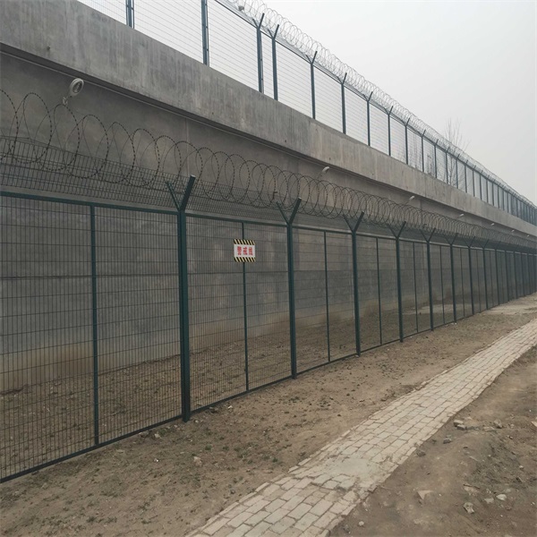 3、監獄隔離網噴塑制作流程,首先將工件脫脂一水洗一拋丸一磷化一烘干一靜電噴涂(將工件連接靜電,粉末經過噴槍噴射在工件表面)一高溫固化一成品。優點:表面平整度、光澤度更優于浸塑表面,色彩艷麗,共有200多種顏色可供選擇,防腐壽命7年以上監獄隔離網主要用途:監獄護欄網主要用于監獄、哨所、邊防、國禁區域、軍事防御防護等高危險地區的防護。監狀護欄網規格側號可根據需要加工訂做。