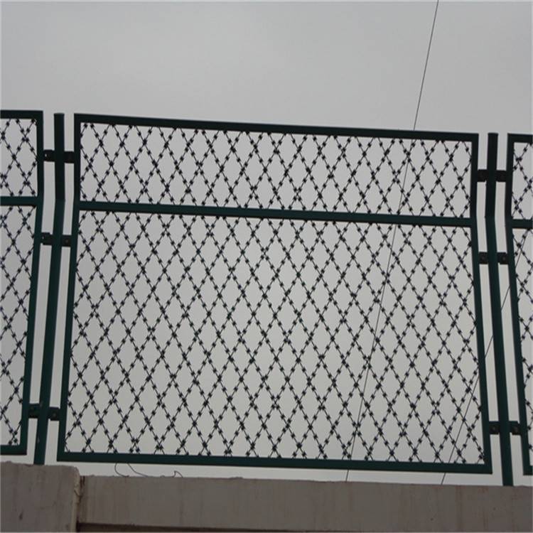 刀片式焊接隔離網的焊接制作方法,刀刺隔離網建設干監獄、看守所的內外墻地面及高墻之上,網墻內側或頂部加裝蛇腹形刀刺網,形成一道高不可攀,難以逾越的隔離障礙。配合高壓打擊電網、各種監控報警設備確保監獄安全萬無一失。