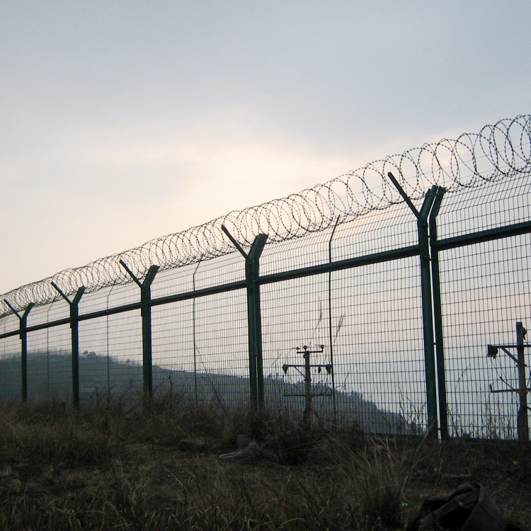 1、機場護欄通常是用帶刺鐵絲網固定的,這大大提高了安全性能