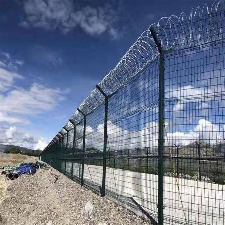 機場圍網其產品造型美觀、花色多樣,既起到圍欄作用,又起到美化作用。由于具有安全性高、防攀爬能力好,網片連接方式采用特制SBS緊扣件,有效防止人為的破壞性拆卸,橫向四道折彎加強筋,使網面強度顯著增加。