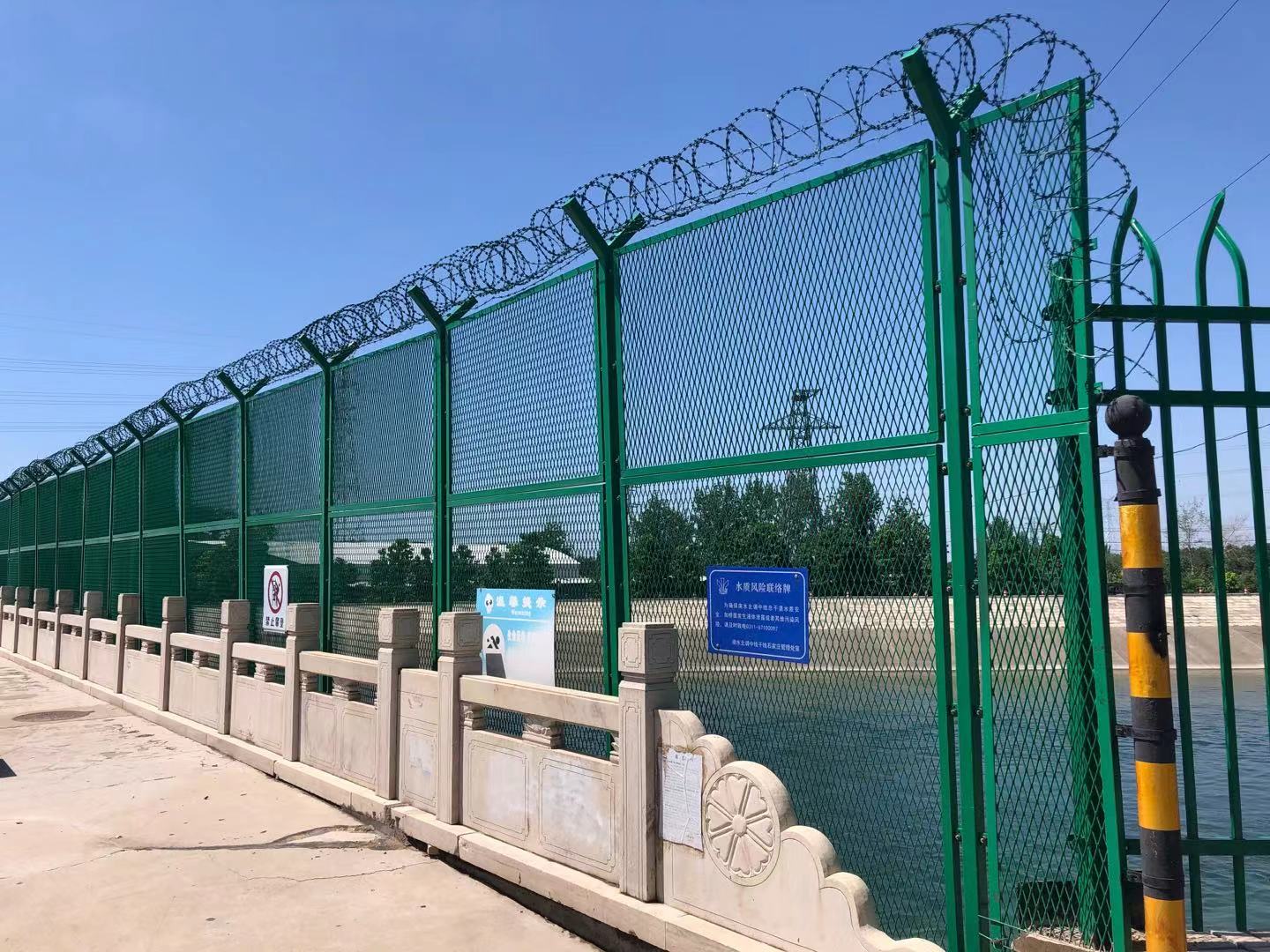 2、搭頭連珠藝術,戰斧式凹槽設計,使護網無需配件,即可與立柱穩定的固定在一起,增強了其堅固檔次,使其有更強的抗拉性、防撞力量,也使其防護作用更好的發揮。