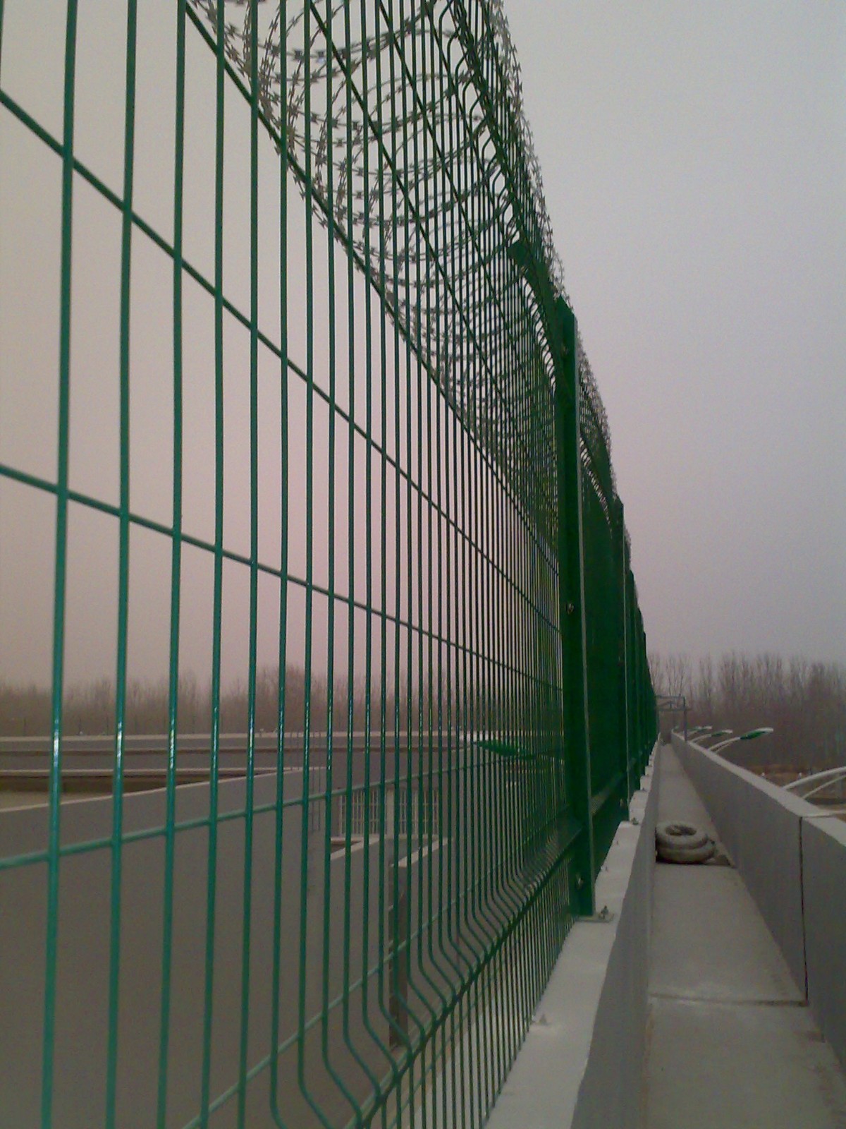 看守所警戒隔離網墻是非常重要的監獄安全防護設施,由焊接鋼網加蛇腹形刀刺網組合而成。產品具有結構新穎、堅固緊密、網面平整、網孔均勻、刀鋒銳利、防攀爬、抗腐蝕性強等特點。建設于監獄的內外墻地面及高墻之上,網墻內側或頂部加裝蛇腹形刀刺網,形成一道高不可攀、難以逾越的隔離障礙。配合高壓打擊電網、各種監控報警設備確保監獄安全萬無一失。具有堅固耐用、美觀大方、刀鋒銳利、防攀爬、抗強風、抗沖擊、抗剪切、抗腐蝕等優異特點。