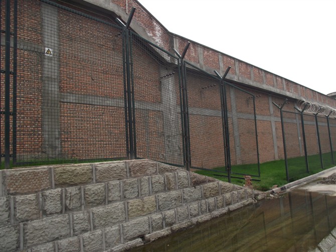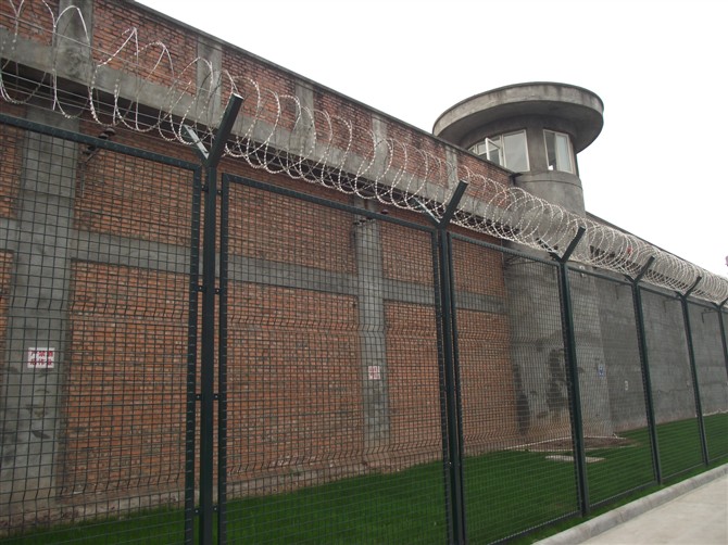 監(jiān)獄防爬護欄網是監(jiān)獄中常見的安全防護措施,對防止犯人逃脫起到了重要的作用。其頂部大多都加裝刀刺網,使其安全性能大大加強的同時也不會增加多少成本。加裝刀刺網之后的鋼網墻遠遠看上去令人心生畏懼,采用雙螺旋刀刺網500圈徑的進行卡扣安裝。光樣子就能使罪犯放棄越獄的想法,我公司生產的監(jiān)獄鋼網墻便能起到如此效果。我們生產的監(jiān)獄防爬護欄網都是采用優(yōu)質的鍍鋅鋼絲焊接而成的,在對其表面進行浸塑處理或噴塑處理,一般是采用多的是上塑厚度可到0.8mm以上。防腐效果更出色。