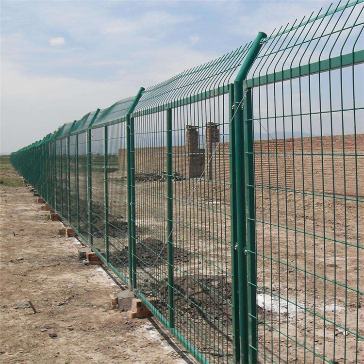 3.水庫防護隔離網網孔150*75毫米,鐵絲直徑浸塑前3.8毫米,鋼管直徑48毫米,浸塑前壁厚1.2毫米,向外傾斜30度,框架護欄網若地面高差超過5cm或有溝渠可先進行平整,坡度平緩后按施工方案圖坡底填土處理。